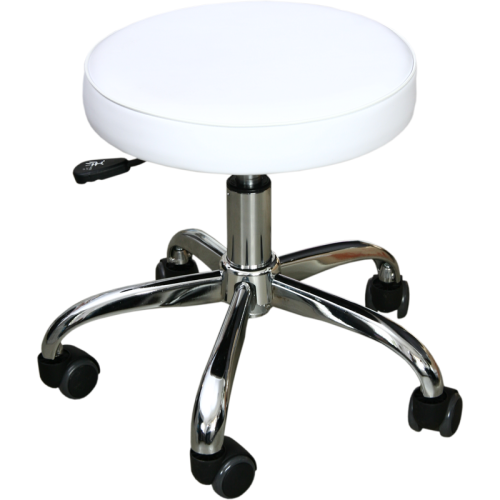 Stool designed specifically for pedicures to ensure the best possible position for a cosmetician.Low seat level enables straight back at work.The stool has installed casters for easy rolling across the floor.The stool construction components are chrome-plated.